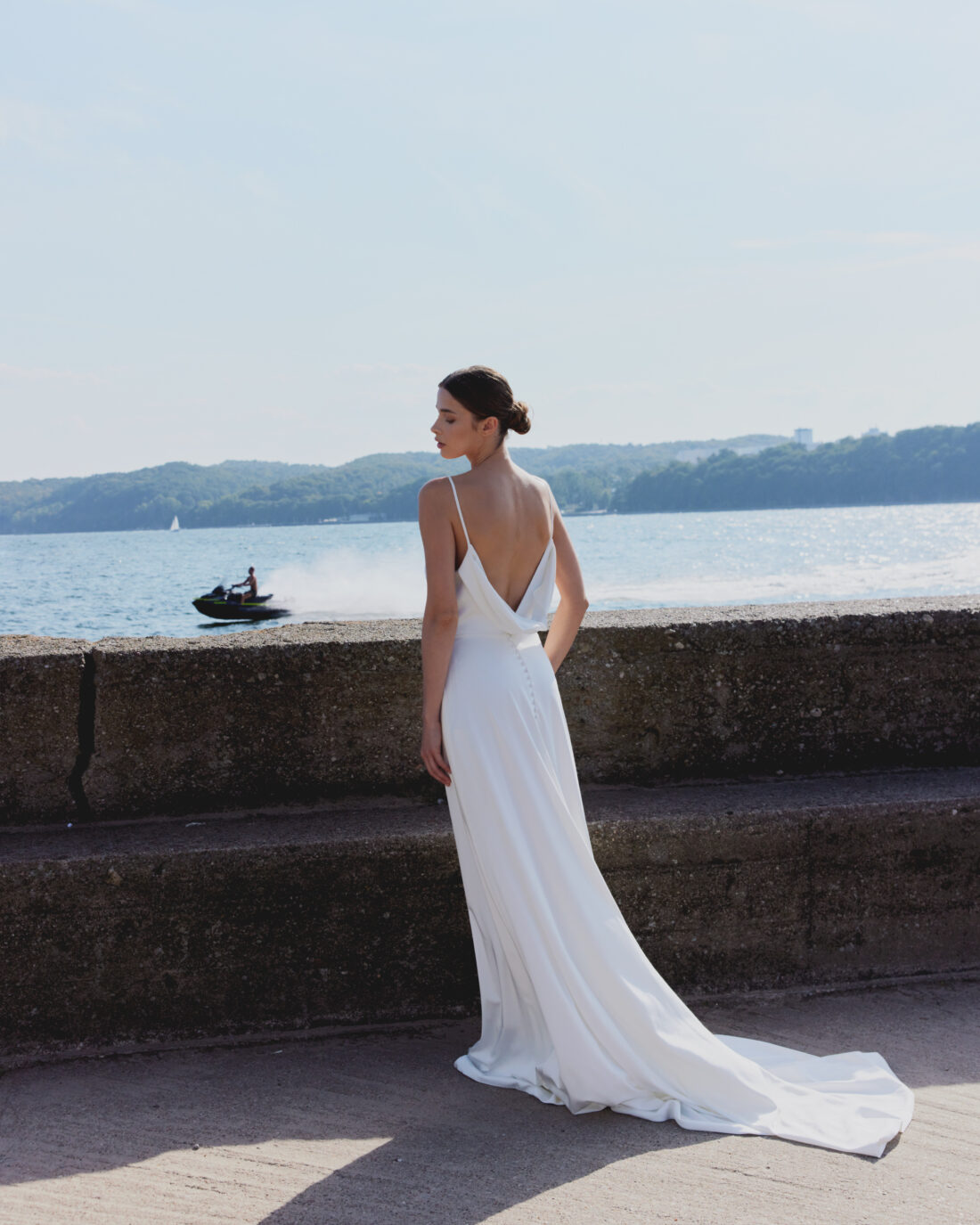 Dieses Brautkleid ist ideal für Bräute, die einen modernen, unkomplizierten und zugleich eleganten Look für ihre Hochzeit suchen – perfekt für Strandhochzeiten, Sommerfeste im Freien oder minimalistische Stadthochzeiten.