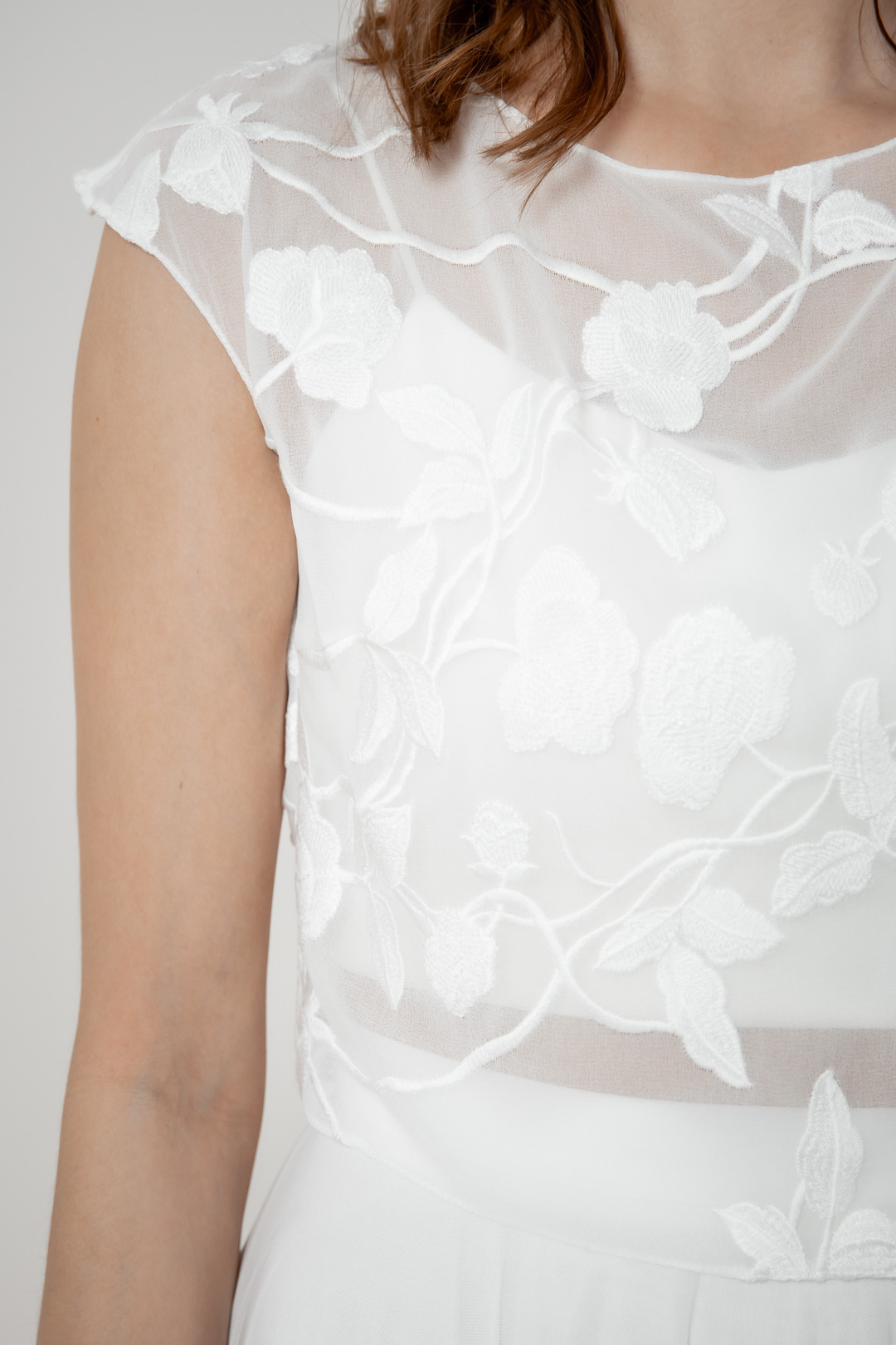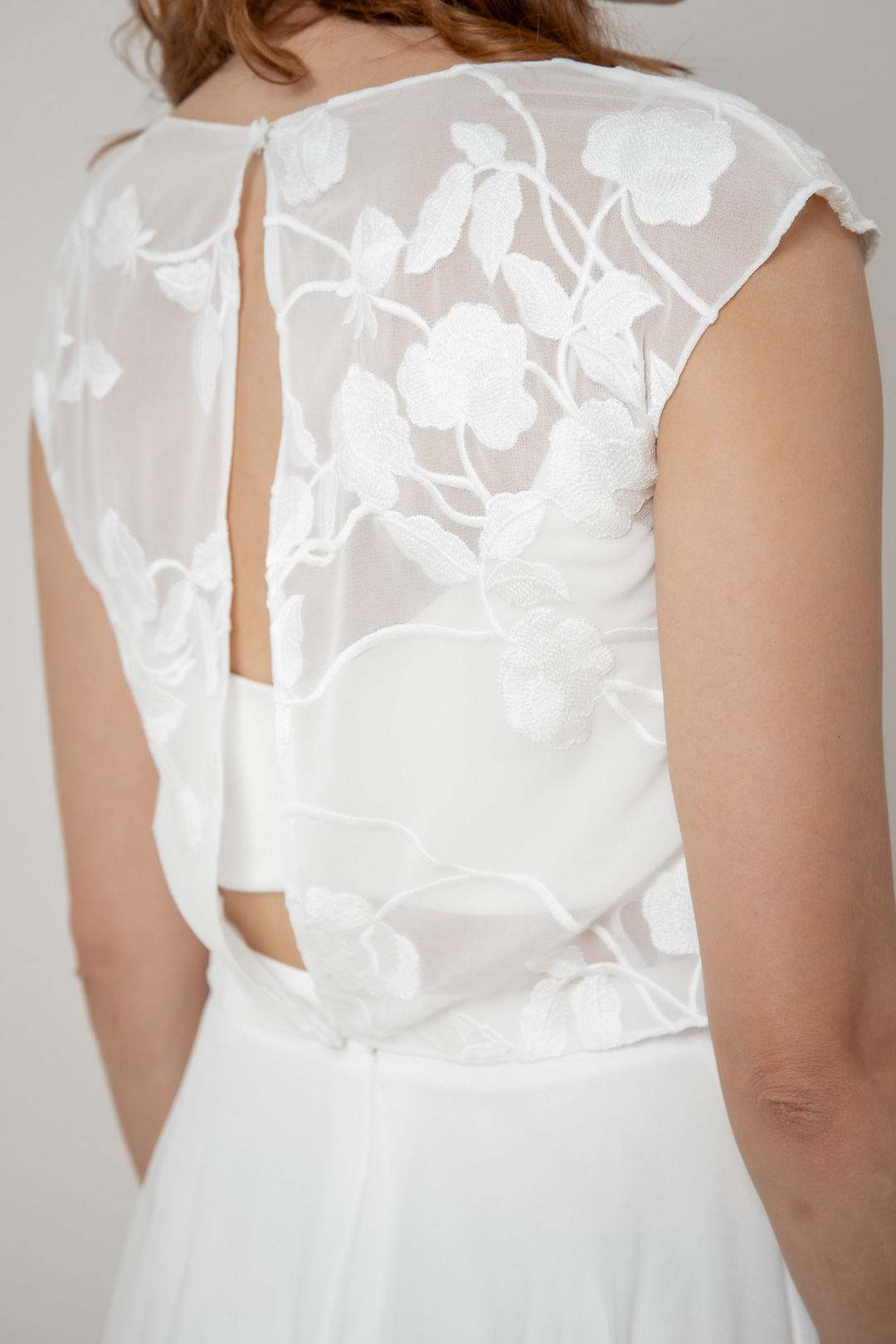 Eniz Brauttop – Zart besticktes Crop Top mit floraler Spitze