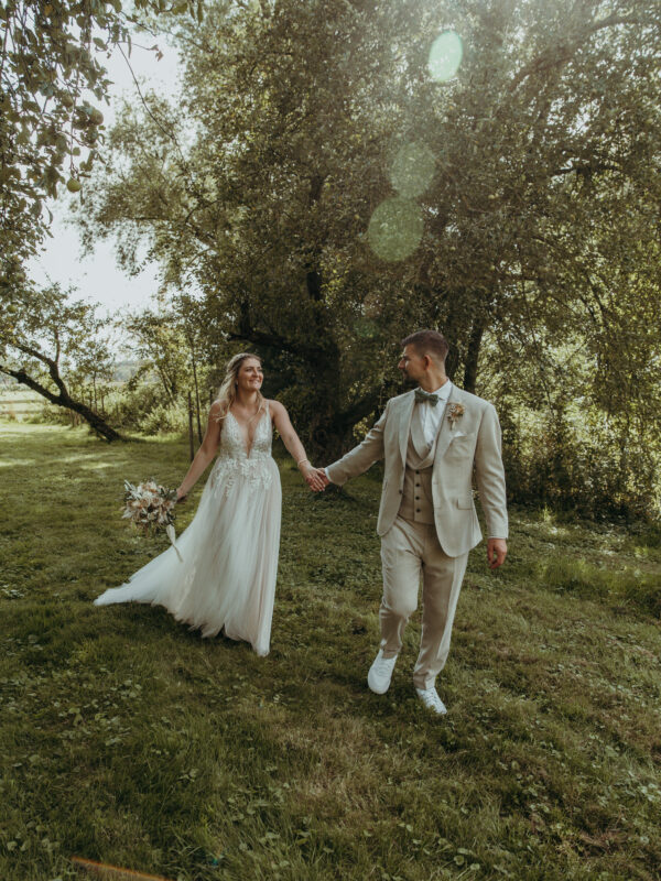 Alle Kleider aus unserer Reloved Kollektion stammen von Elbbraut. Damit sind sie nicht nur liebevoll von uns persönlich ausgesucht und in höchster Qualität gefertigt. Wir kennen alle Designerinnen, können alle Lieferketten nachvollziehen und kennen uns mit den verwendeten Materialien bestens aus. So können wir Euch garantieren, dass Ihr auch als Reloved Elbbraut mit einem gebrauchten Brautkleid das allerbeste Produkt bekommt. Und wenn Du genau Dein perfektes Brautkleid in unserer Reloved Kollektion findest, aber ein paar Änderungswünsche hast, Dir längere Ärmel wünschst oder zusätzliche Spitze benötigst – kein Problem! Wir können Dir zusätzliche Stoffe direkt aus dem Atelier der Designerin ordern und alle gewünschten Änderungen in unserem Partneratelier umsetzen lassen. Damit sich Dein Brautkleid für Dich anfühlt, als wärs nur für Dich gemacht.